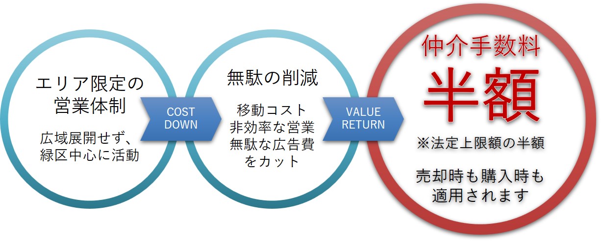 基本的にはこの方針ですが、物件によっては売主様から仲介手数料を受領できないケースもあり、その場合は買主様から宅地建物取引業法に基づく正規の仲介手数料を受領しております。